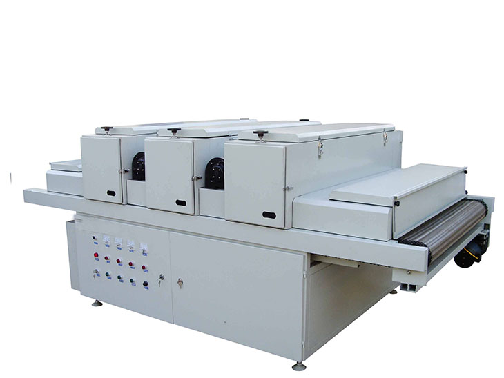 高壓汞燈。該燈管光變普范圍在350 nm-450 nm之間,主峰值為365 nm,采用進(jìn)口石英管材及鎢鉬材料,用料好、強(qiáng)度高、壽命長(zhǎng),燈罩與工作面140-180mm高度范圍可調(diào),提高了固化質(zhì)量,并可全光或半光工作。輸送部分采用輥筒式輸送設(shè)計(jì),不易變形,運(yùn)送物料更加平穩(wěn),工作中無(wú)需調(diào)整,沒有噪音,改善了由于輸送帶跑偏而產(chǎn)生的不便維修很方便。配置大流量排風(fēng)系統(tǒng),散熱效果好,確保箱體內(nèi)的溫度始終在標(biāo)準(zhǔn)值范圍內(nèi),使